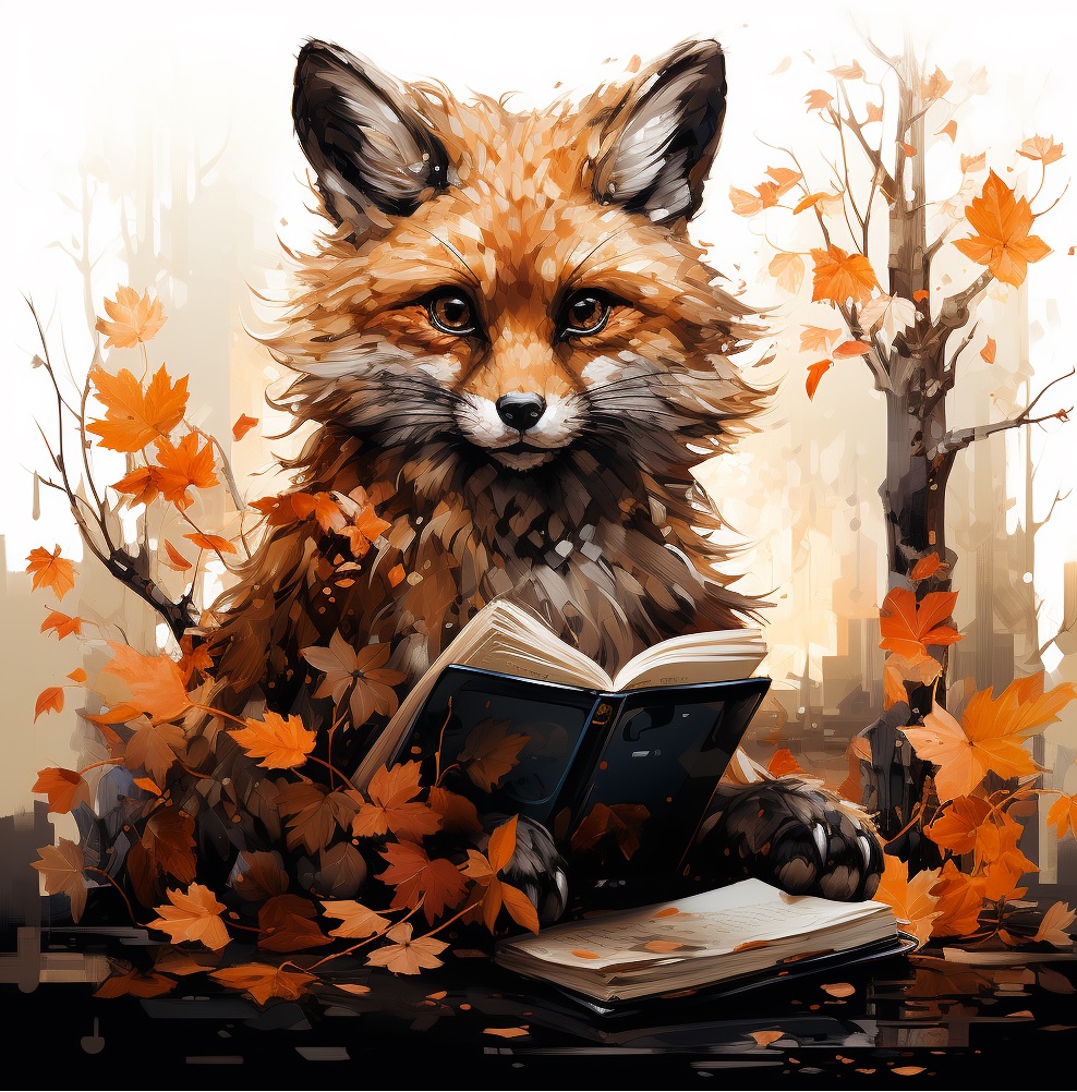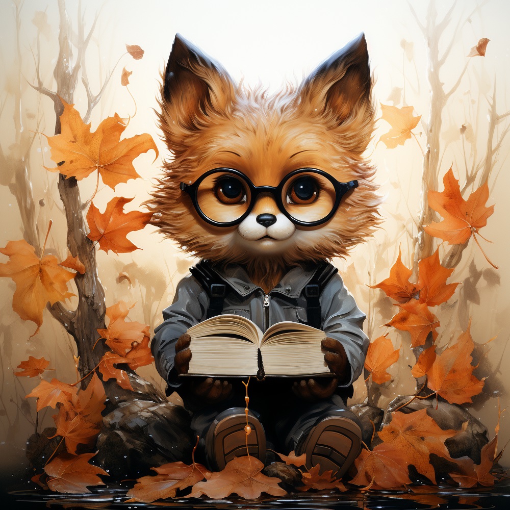 A studious fox symbolizing curiosity, identity, and gentle concentration.