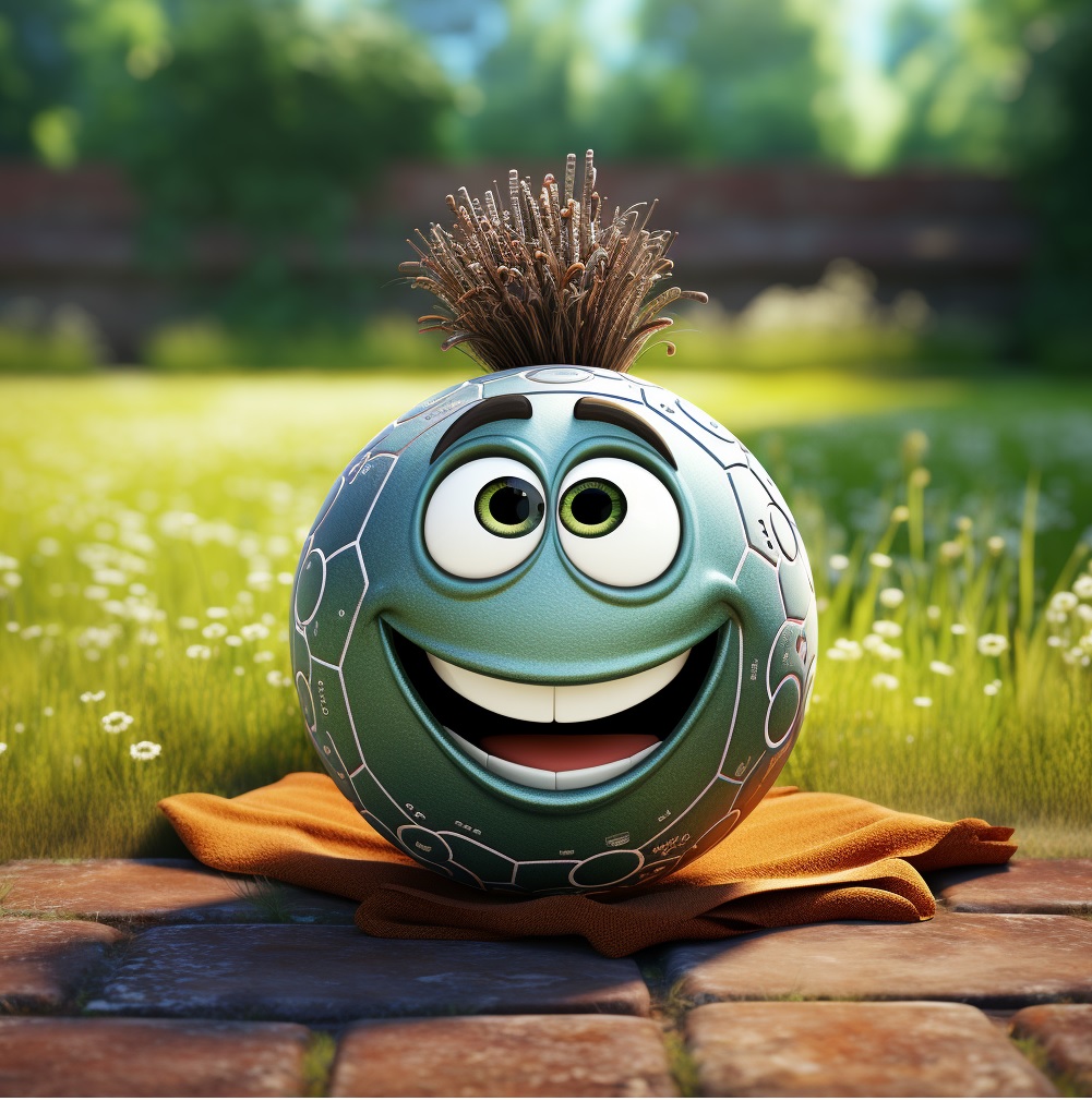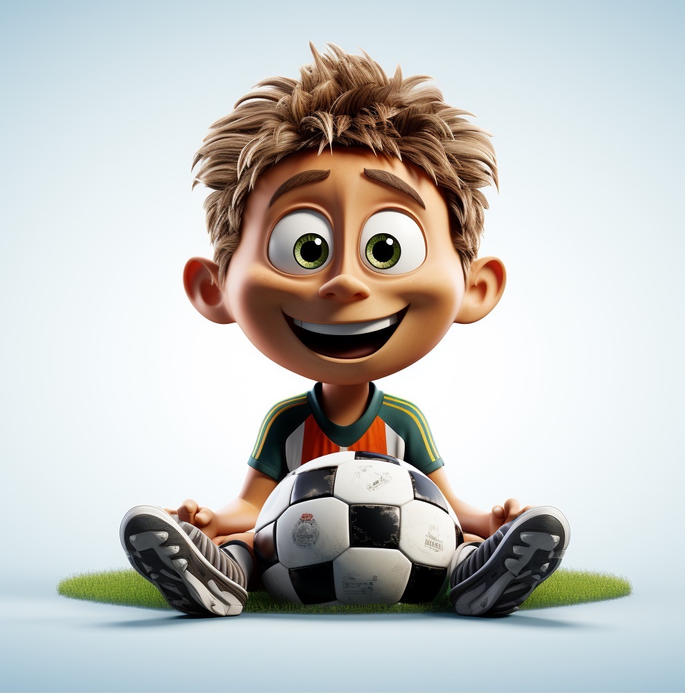 A cheerful boy sitting with a soccer ball, full of anticipation.