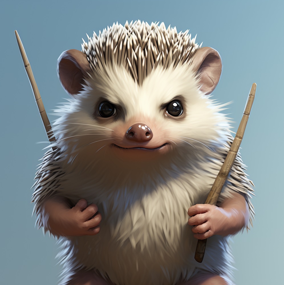 A hedgehog holding drumsticks, ready to turn quiet into rhythm.