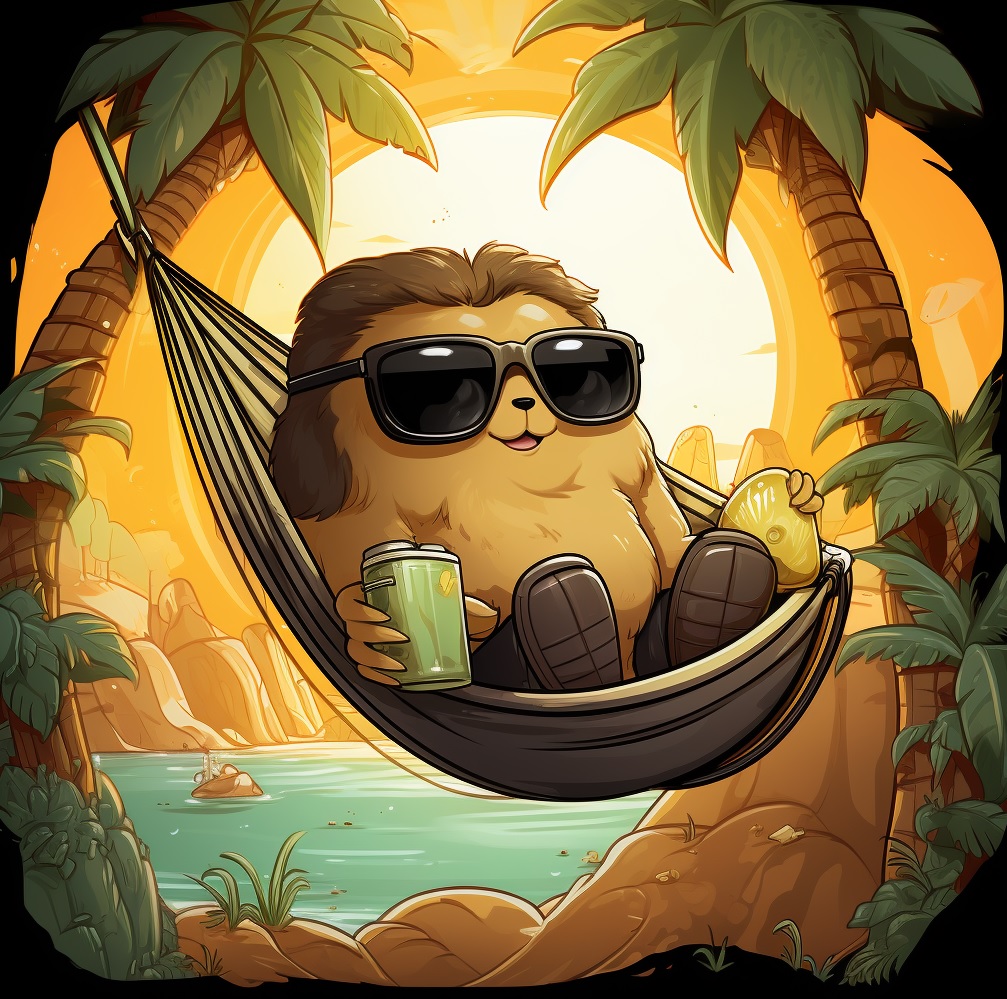 A sloth lounges in a hammock at golden hour — sunglasses on, worries off.